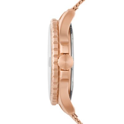 Fb 01 Three Hand Date Rose Gold Tone Stainless Steel Mesh Watch Es4999 Fossil